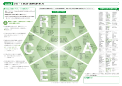 4つのワークを通して、自分で結果を整理、分析します。また、興味を生かせる職業を具体的に知り、学生が職業に関するイメージをチェックしたり、社会にどんな職業があるのかを知るきっかけとすることができます。